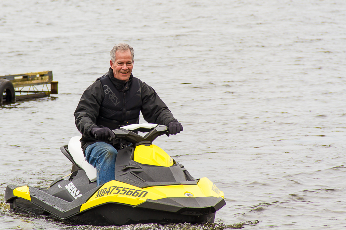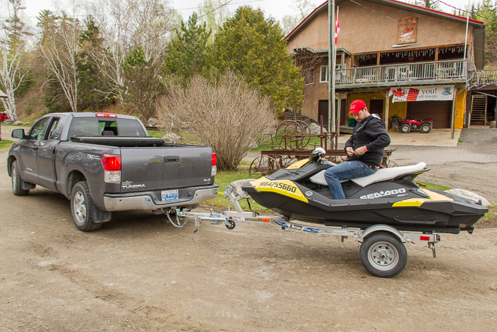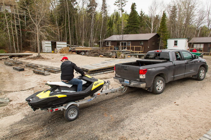 We’re not super prepared for this, just super confident. We have no ropes on the Sea-Doo so once it’s set free from the trailer, Eric is on his own.