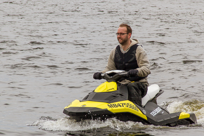 As a result of the boat show, and a few conversations in the family, we’re now the proud owners of a Sea-Doo Spark. On May 10th, our 1st weekend at the lake we’re getting ready to take it out for its maiden voyage. The weather is not the best. It’s cool/cold, overcast and a little windy. Everyone wants to take it for a spin, but nobody is too keen about how cold and wet it might be. On the Sunday, it’s decided, we’re going no matter how cold it might be.