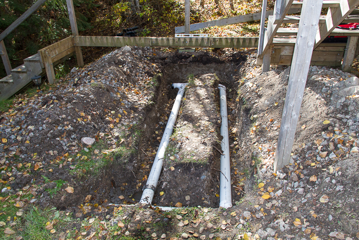 The following weekend I splice in two new pipes and cover them over.